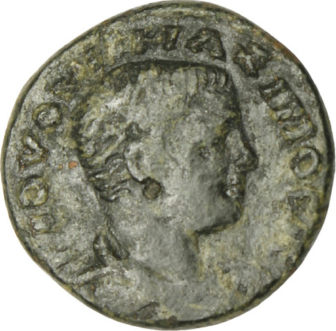 draped bust of Athena, right, wearing Corinthian helmet and aegis