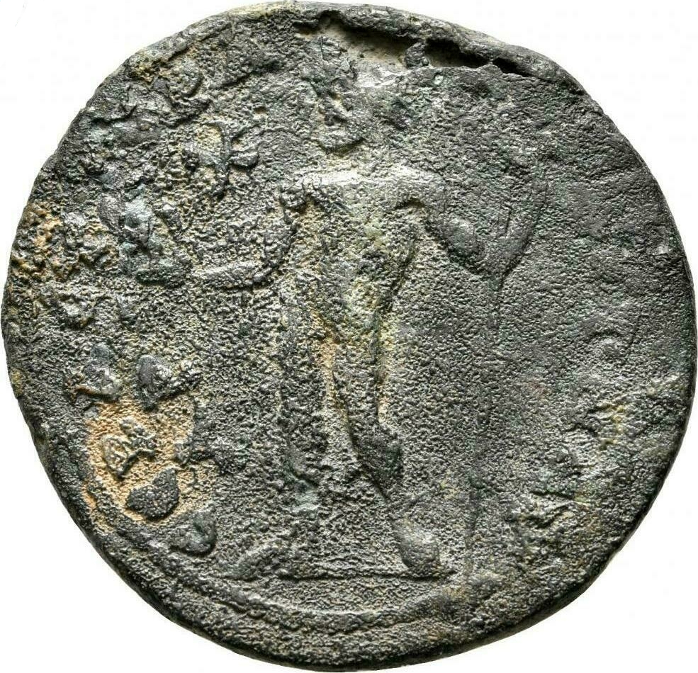 Zeus standing facing, head left, holding nike (or eagle?) and sceptre (?)