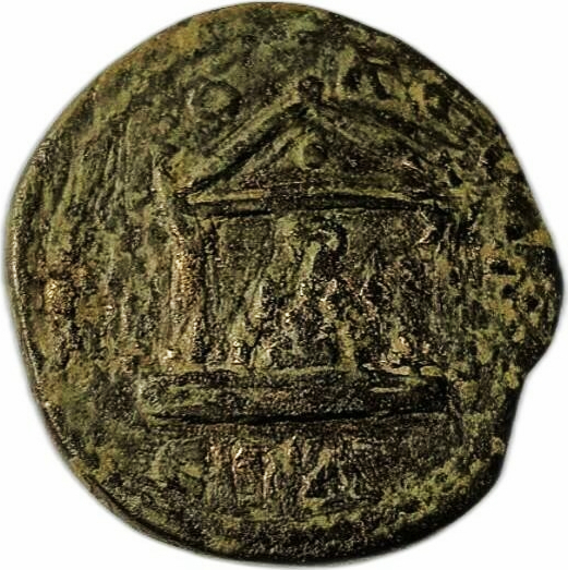 temple with two columns, enclosing agalma of Mount Argaeus; globe or star in pediment