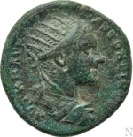 radiate, draped and cuirassed bust of Elagabalus, right, seen from rear