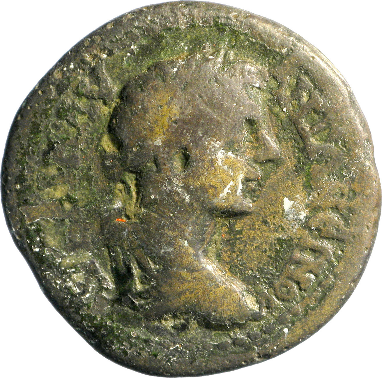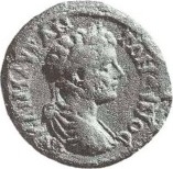 laureate, draped and cuirassed bust of Elagabalus, right, seen from rear |