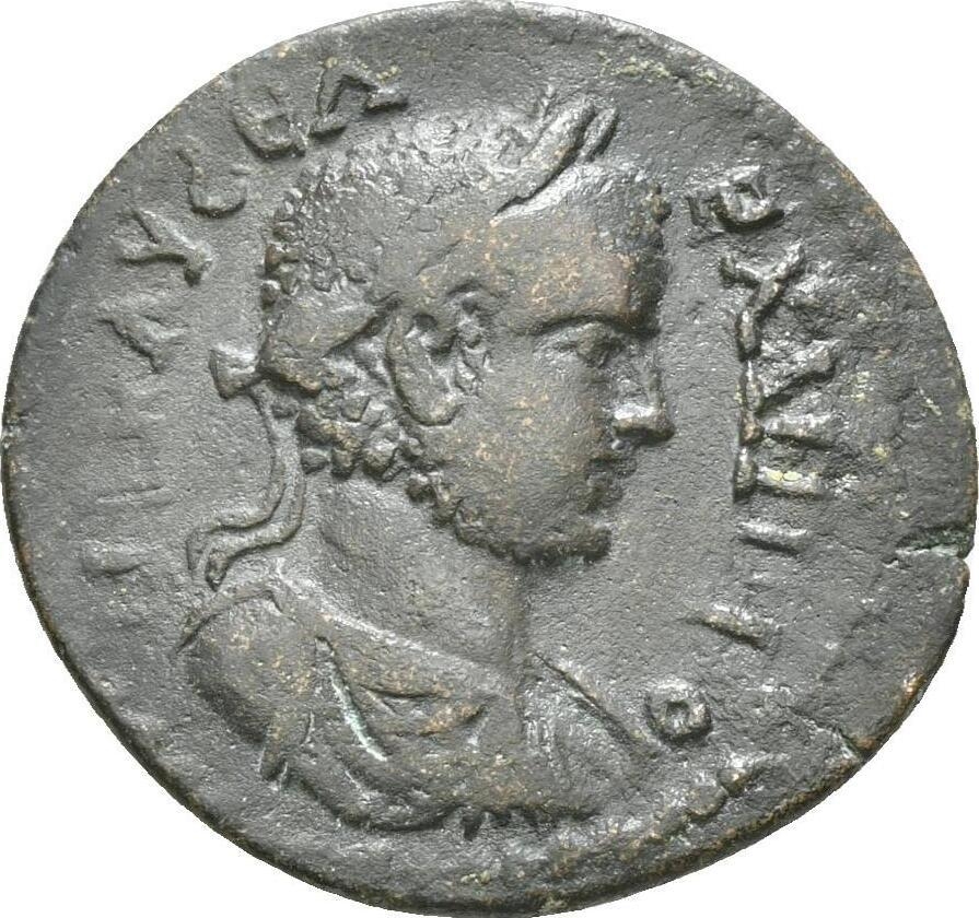 laureate, draped and cuirassed bust of Severus Alexander, right, seen from front
