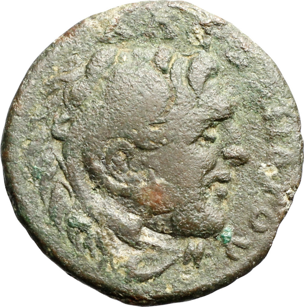 head of Alexander the Great, right, wearing lion skin
