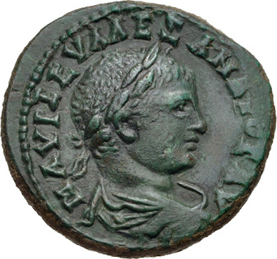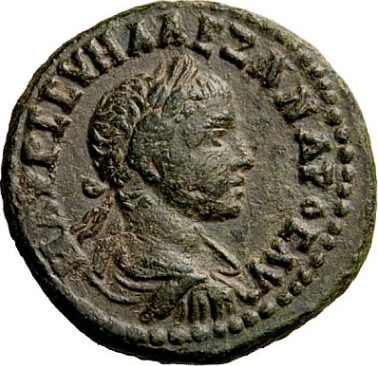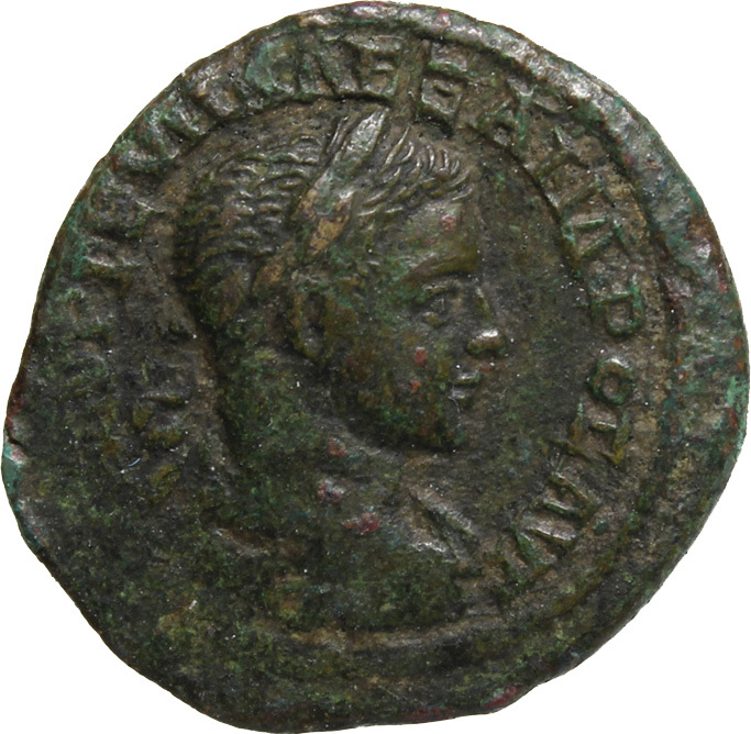 obv. legend: Μ ΑΡ(sic) Ϲ ΑΛEZ(retrograde)ΑΝΔΡΟϹ ΑΥΓ