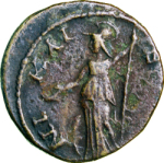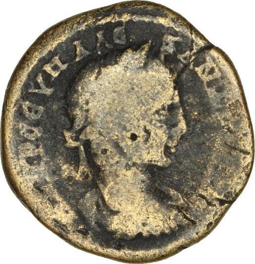 laureate, draped and cuirassed bust of Severus Alexander, right, seen from rear |