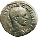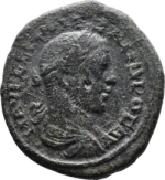 laureate, draped and cuirassed bust of Severus Alexander, right, seen from rear