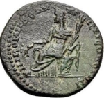 laureate, draped and cuirassed bust of Elagabalus, right, seen from front