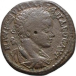 laureate, draped and cuirassed bust of Severus Alexander, right, seen from rear
