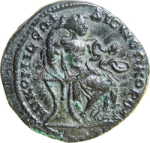 bare-headed, draped and cuirassed bust of Maximus, right, seen from front