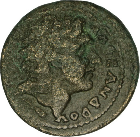 diademed head of Alexander the Great, right, with flowing hair; below, club