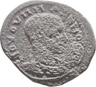 bare-headed, draped and cuirassed bust of Maximus, right, seen from front