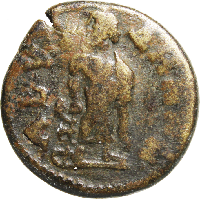 Asclepius standing facing, head left, holding serpent-staff