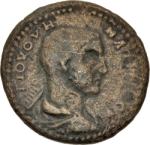 bare-headed, draped and cuirassed bust of Maximus, right, seen from rear