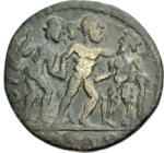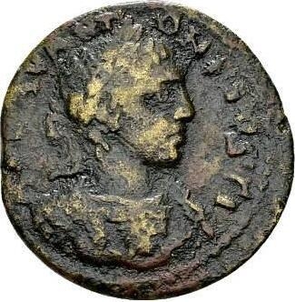 laureate bust of Elagabalus, right, wearing cuirass decorated with Gorgoneion, seen from front