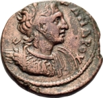 diademed and cuirassed bust of Alexander the Great with hanging hair, right, shield on left shoulder
