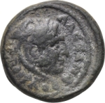 head of Alexander the Great, right, wearing lion skin