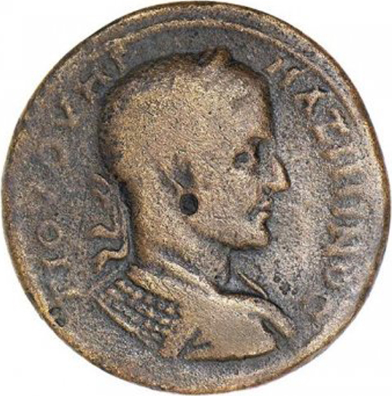laureate and cuirassed bust of Maximinus, right, seen from rear