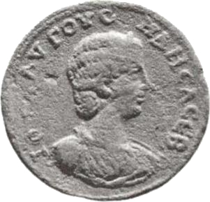the Emperor on horse galloping, right, wearing chlamys and about to spear fallen enemy lying on the ground; at the enemy's feet, shield |