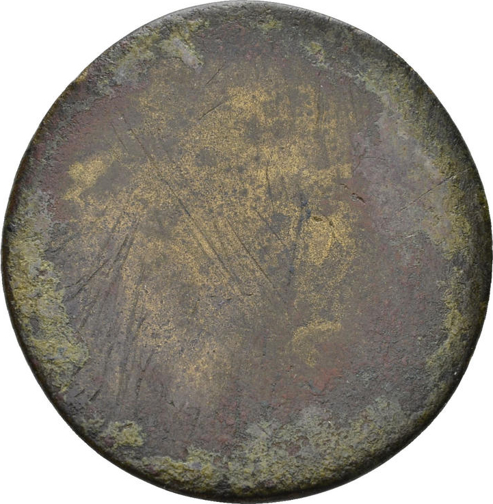 Asclepius standing facing, head left, holding serpent-staff, facing Hygieia standing, right, feeding serpent from patera; behind her, pelta |