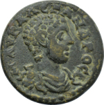 bare-headed, draped and cuirassed bust of Severus Alexander, right, seen from front