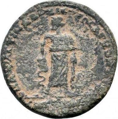 Asclepius standing facing, head left, holding serpent-staff |