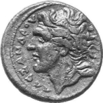 Alexander the Great standing facing, head right, holding spear and parazonium