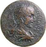 laureate, draped and cuirassed bust of Maximinus, right, seen from rear |