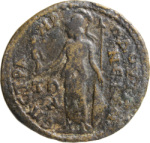 Athena standing facing, head left, holding spear and Nike; behind, shield |