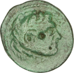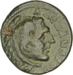 Alexander the Great riding Bucephalus galloping, right, his mantle floating behind him, hurling spear