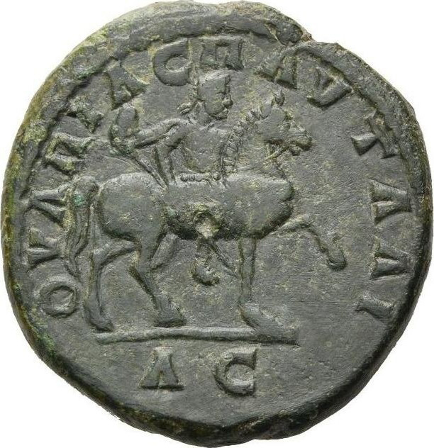 laureate, draped and cuirassed bust of Elagabalus, right, seen from rear