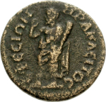 laureate, draped and cuirassed bust of Severus Alexander, right, seen from rear