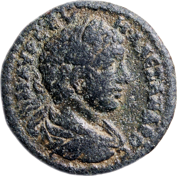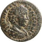 laureate, draped and cuirassed bust of Severus Alexander, right, seen from rear