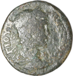 laureate, draped and cuirassed bust of Maximus, right, seen from rear