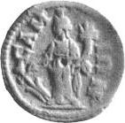 Tyche standing facing, head left, holding rudder and cornucopia