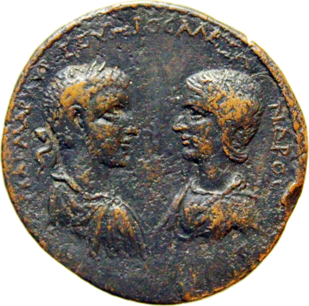 facing busts of Alexander, laureate, draped and cuirassed, right, and Julia Mamaea, draped, left