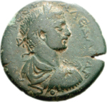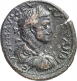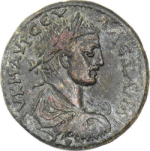 laureate, draped and cuirassed bust of Severus Alexander, right, seen from rear