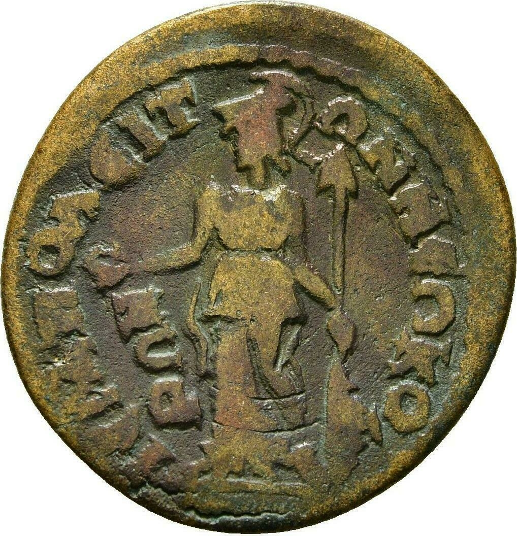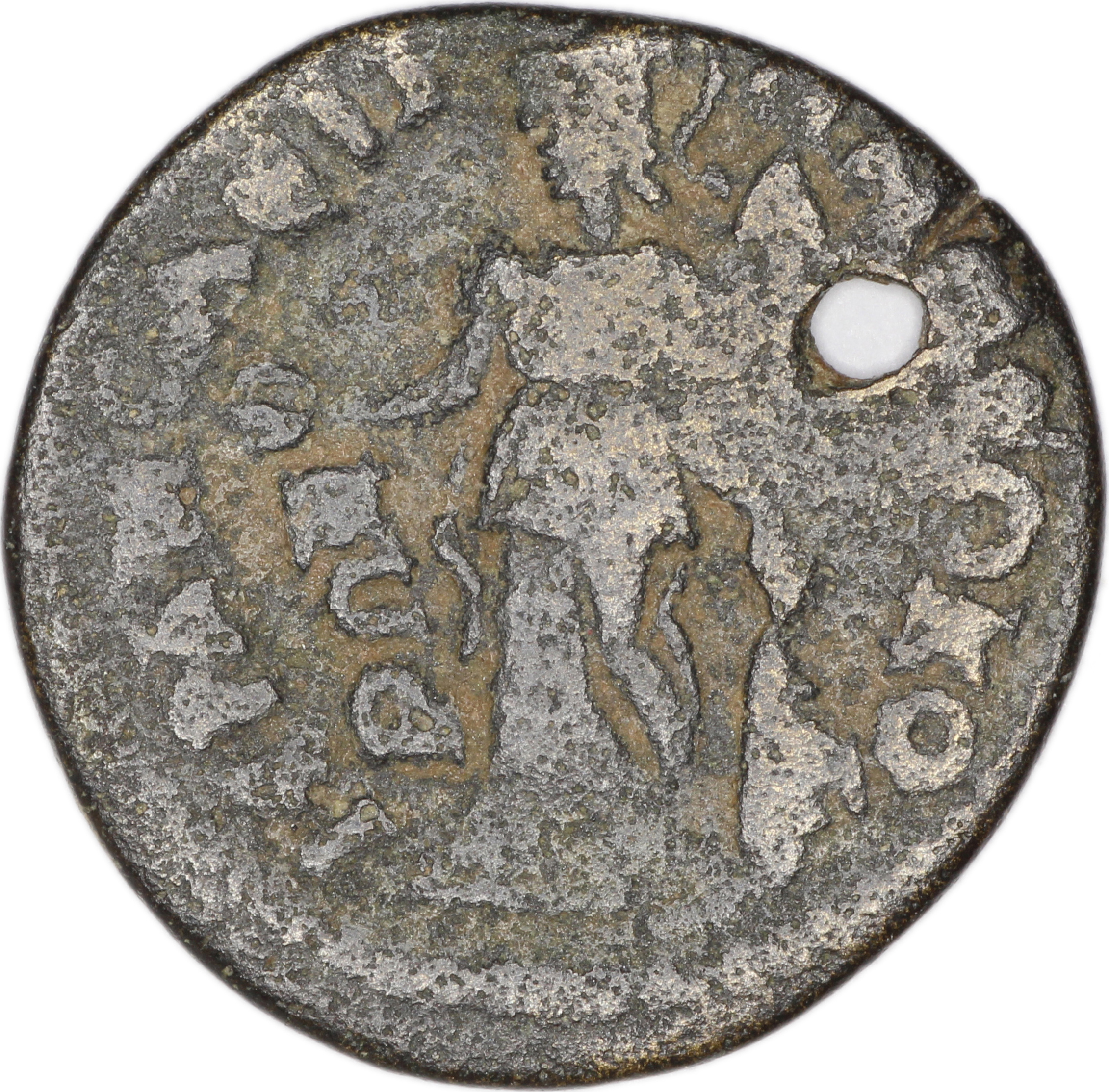 GIC 278 (Mên standing facing, head l., holding sceptre in l. hand and pinecone in r., Α in l. field, uncertain letter or character in r. field)