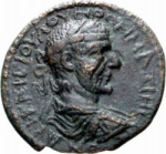laureate, draped and cuirassed bust of Maximinus, right, seen from rear |