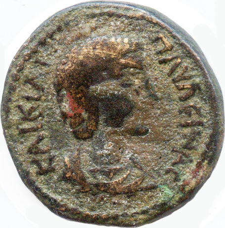 Confirmation required: the coin does not look very convincing, and might possibly have been altered from something else depicting an empress and Tyche.