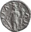 Tyche standing facing, head left, wearing kalathos, holding cornucopia and rudder