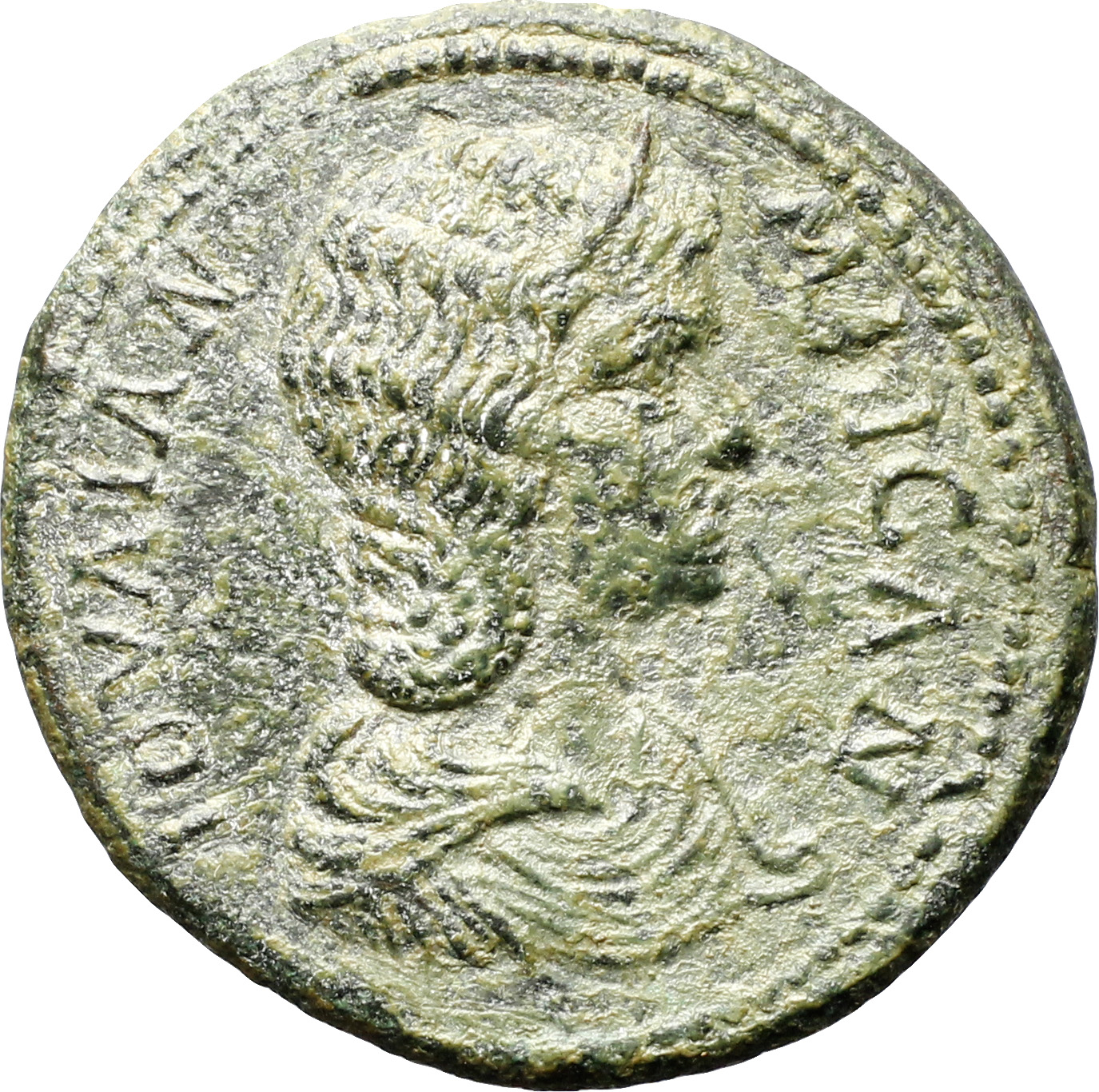 diademed and draped bust of Julia Maesa, right
