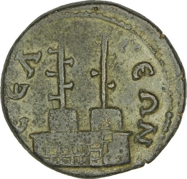 laureate, draped and cuirassed bust of Severus Alexander, right, seen from rear |