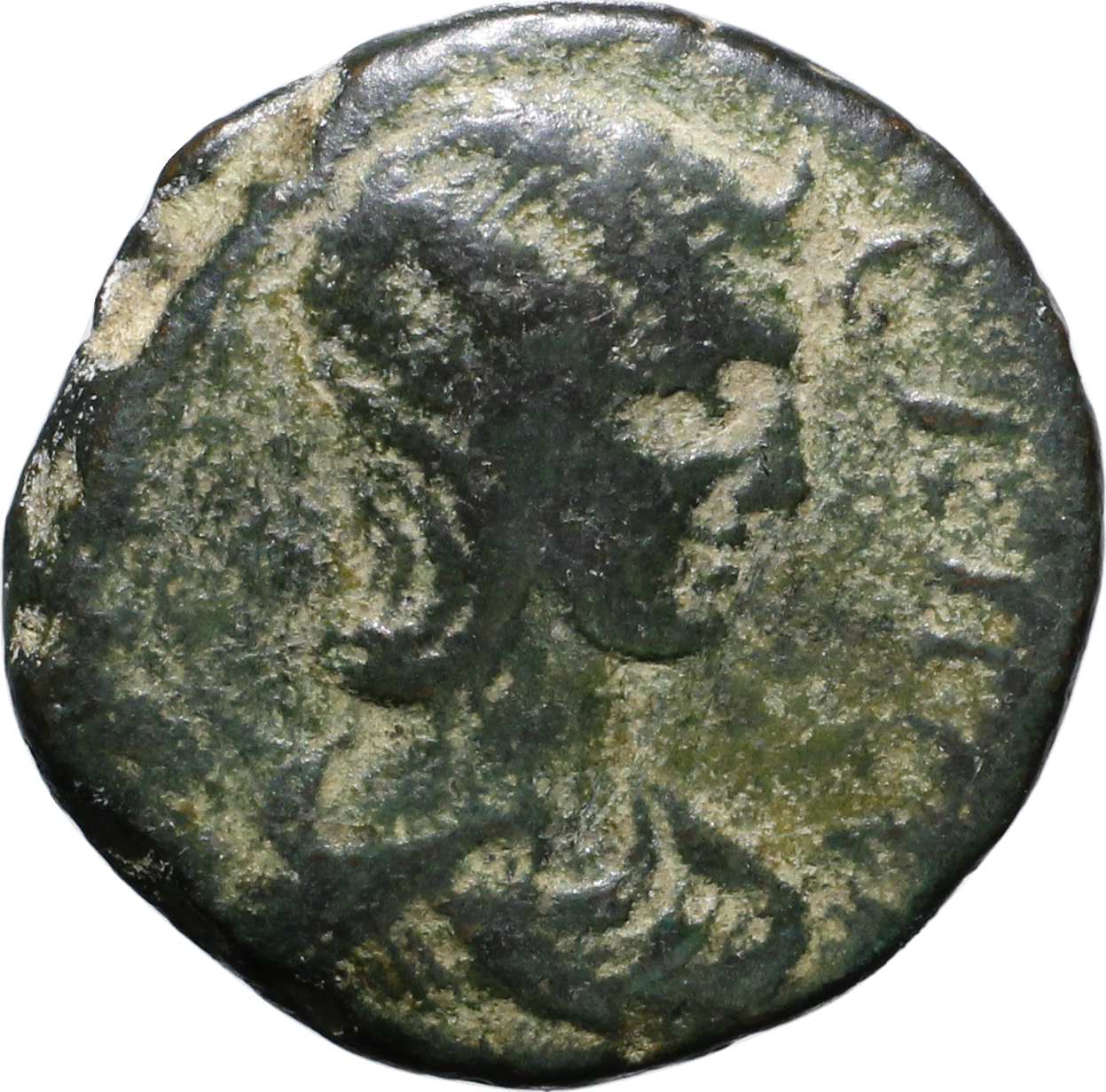 diademed and draped bust of Julia Mamaea, right