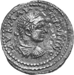 laureate, draped and cuirassed bust of Elagabalus, right, seen from rear