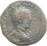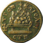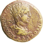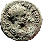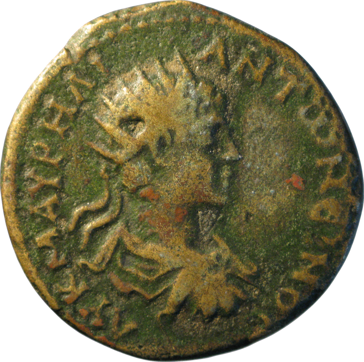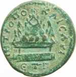GIC 12i (Helios (?), radiate head r.)                                                  ; garlanded altar;  obverse is virtually illegible; date looks like ƐΤ Ι, but the coin is damaged in the exergue and is probably ƐΤ Γ