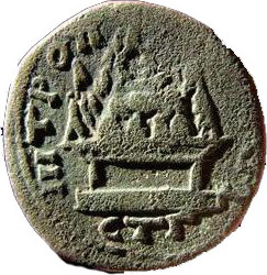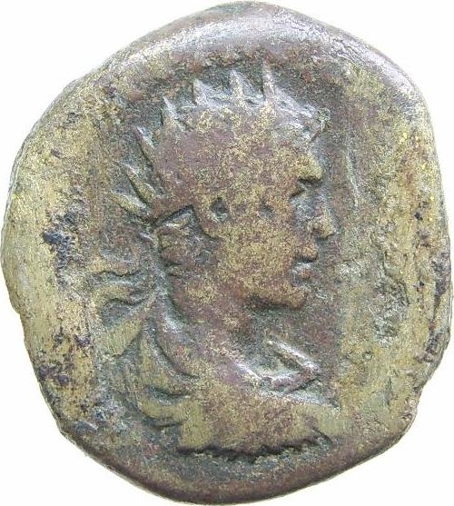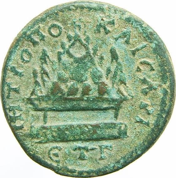 GIC 12i (Helios, radiate head r.) ; garlanded altar; obverse is virtually illegible; date looks like ƐΤ Ι, but the coin is damaged in the exergue and is probably ƐΤ Γ