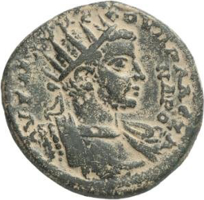 radiate and cuirassed bust of Severus Alexander, right, with drapery, seen from front