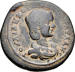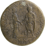 Julia Paula, standing right in long chiton clasping hands with Elagabalus, standing left in toga |