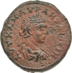 laureate, draped and cuirassed bust of Elagabalus, right, seen from rear