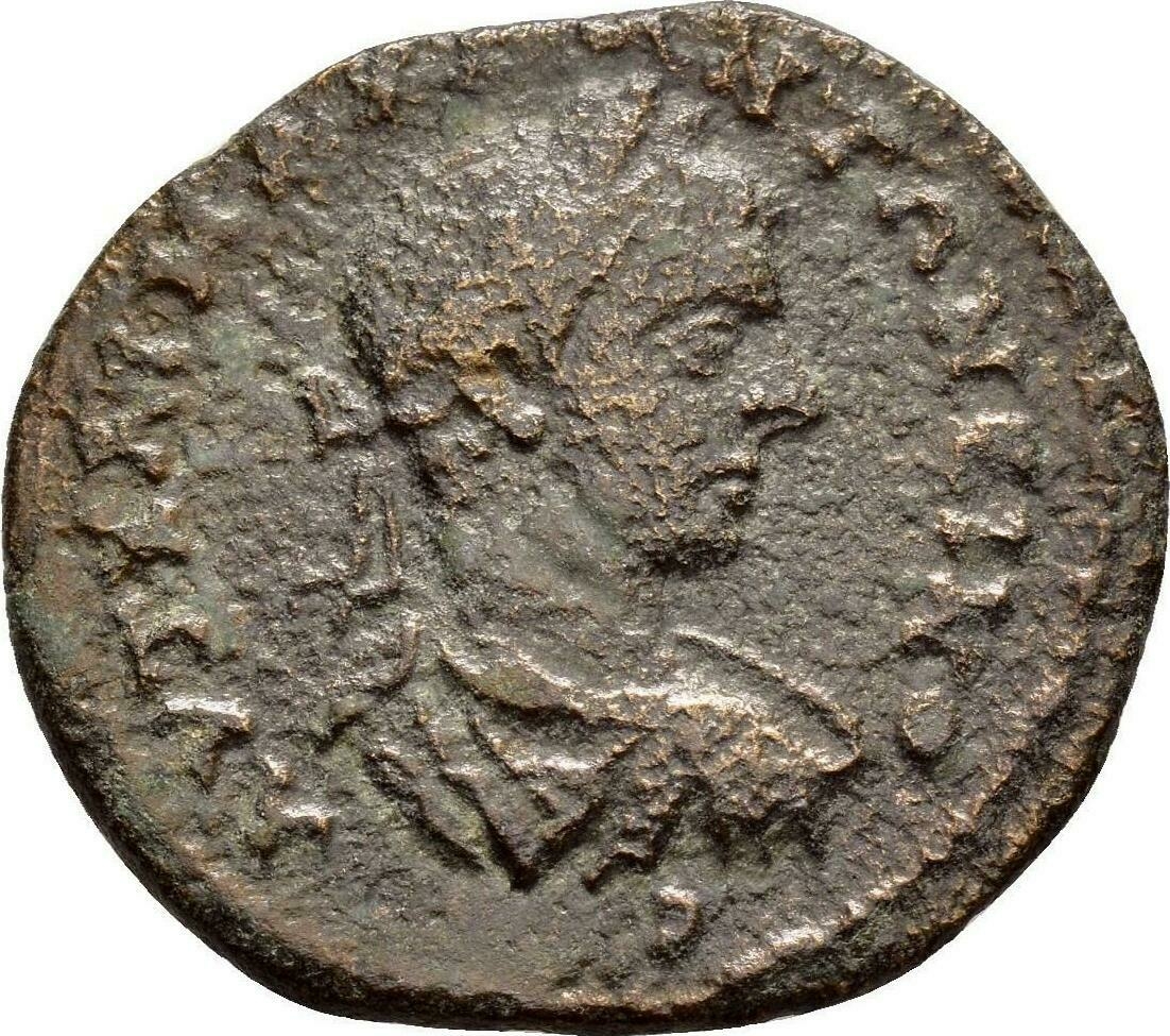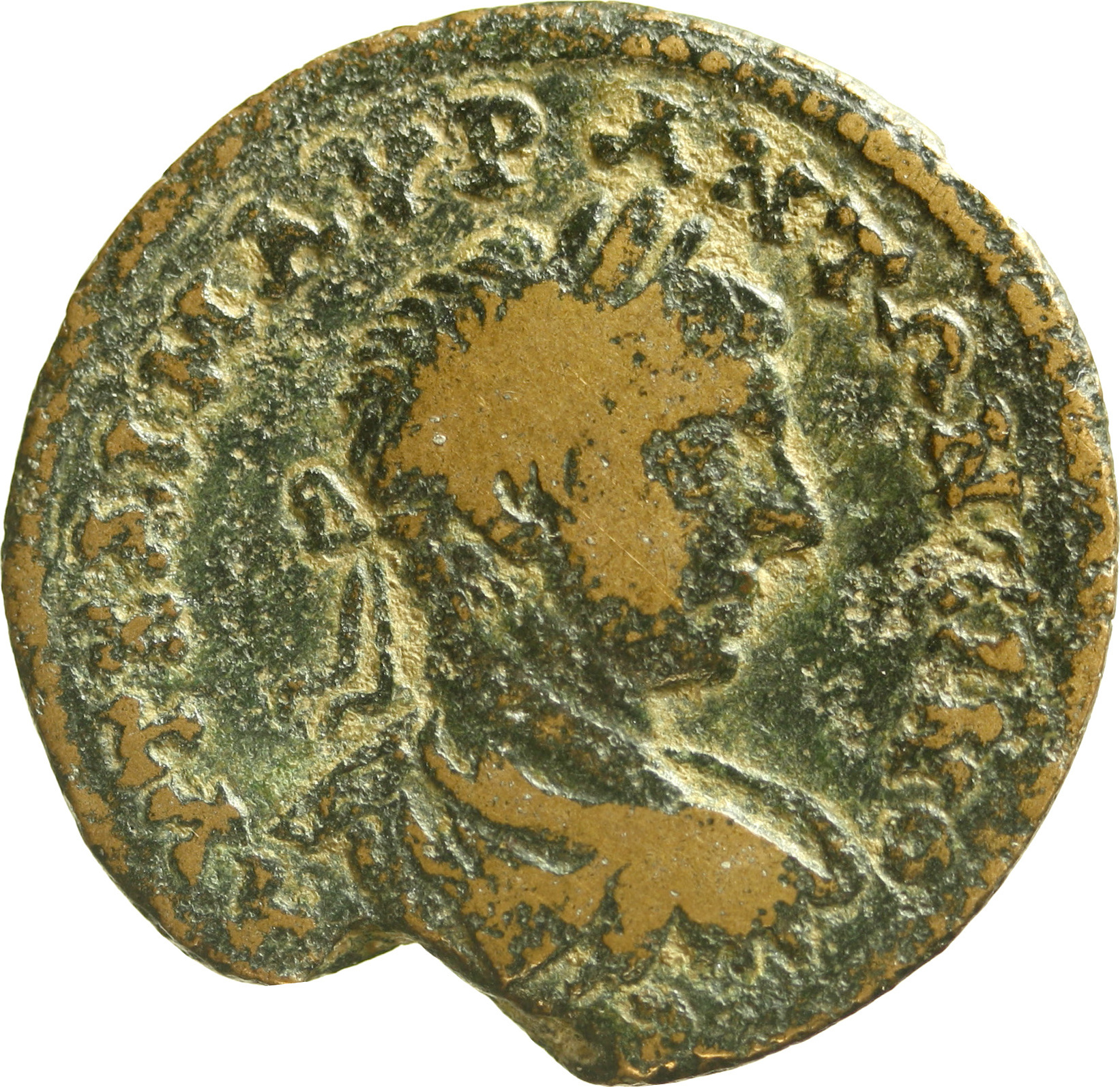 laureate, draped and cuirassed bust of Elagabalus, right, seen from rear